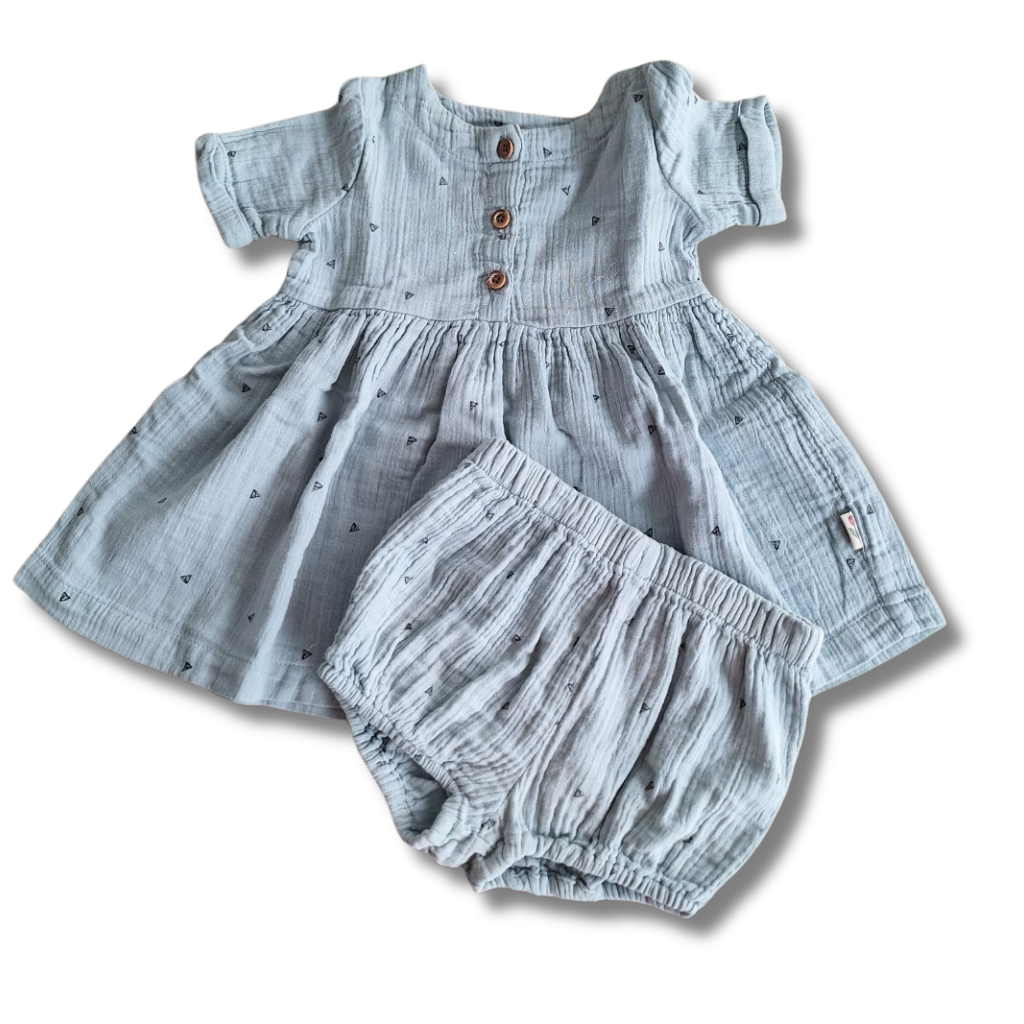 Setje bestaat uit een jurkje en een bloomer.