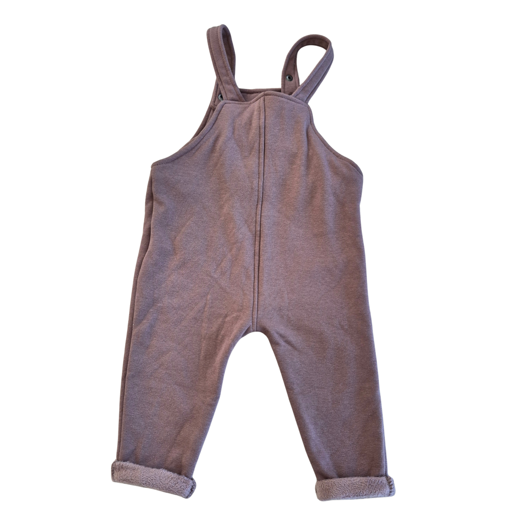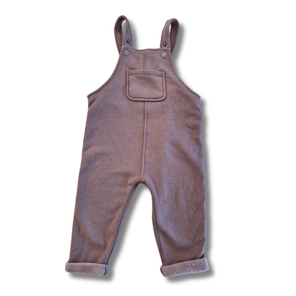 Bruine salopet met fleece stof binnenin.