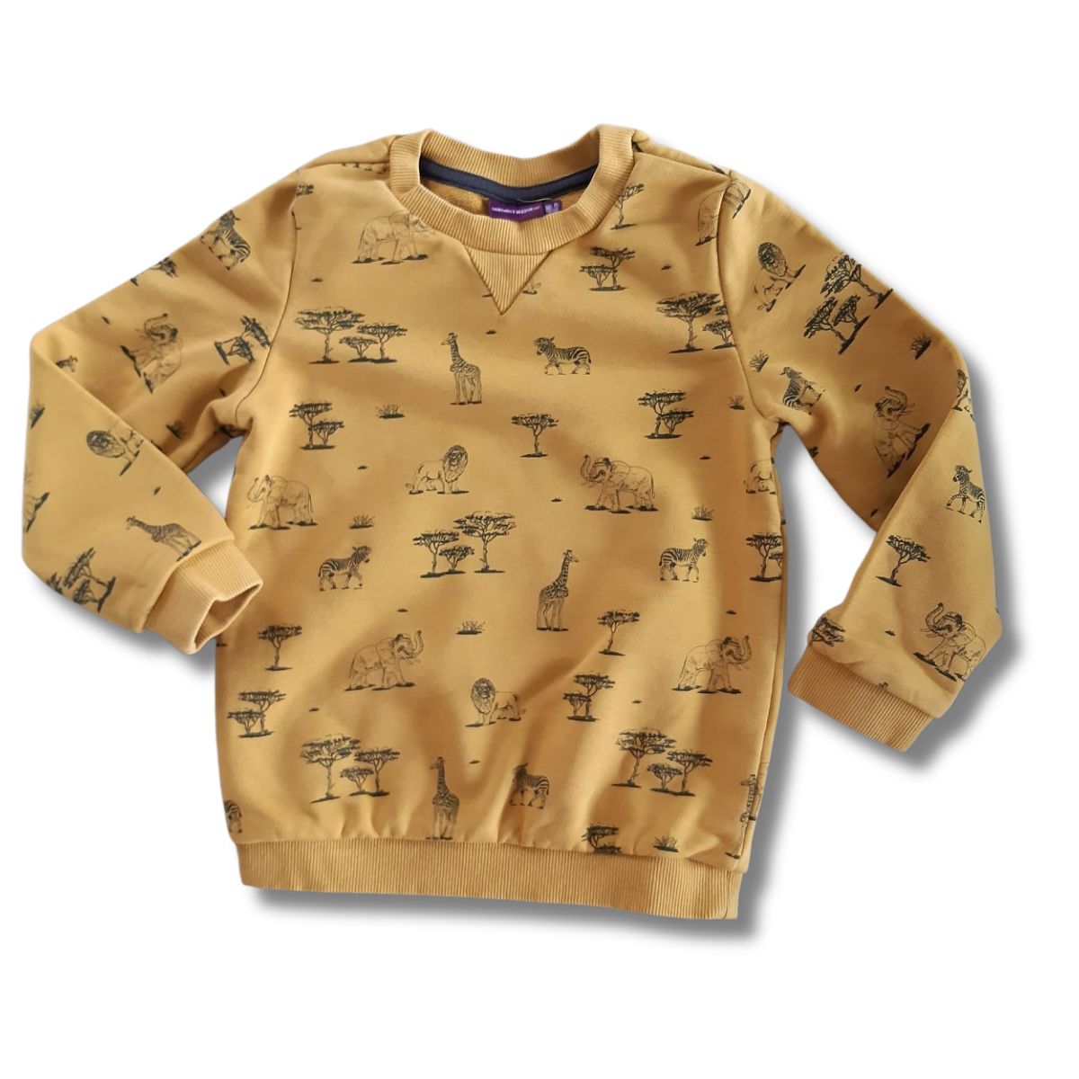Okerkleurige trui, thema safari.