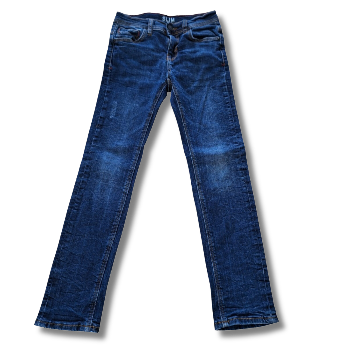 Donker blauwe jeansbroek, Slim fit, aanpasbaar.
