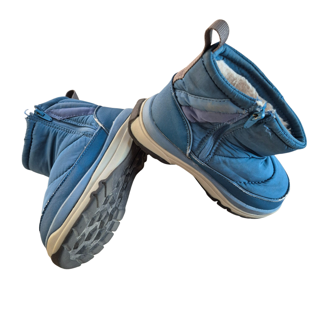 Blauwe sneeuwlaarsjes met warme voering binnenin.