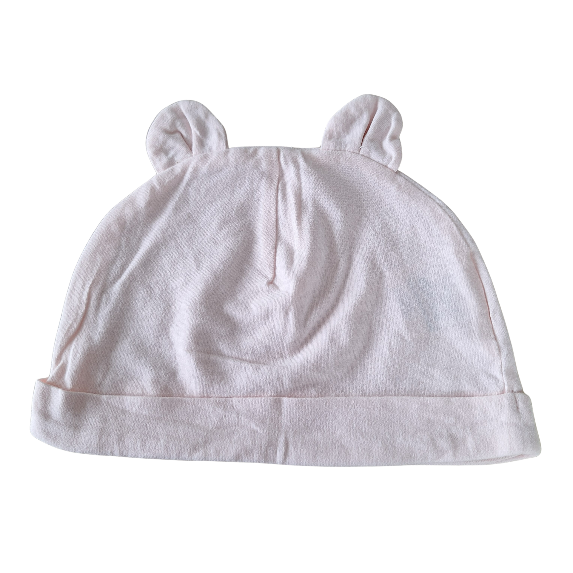 Licht roos mutsje met oortjes. Ideaal als slaapmutsje..