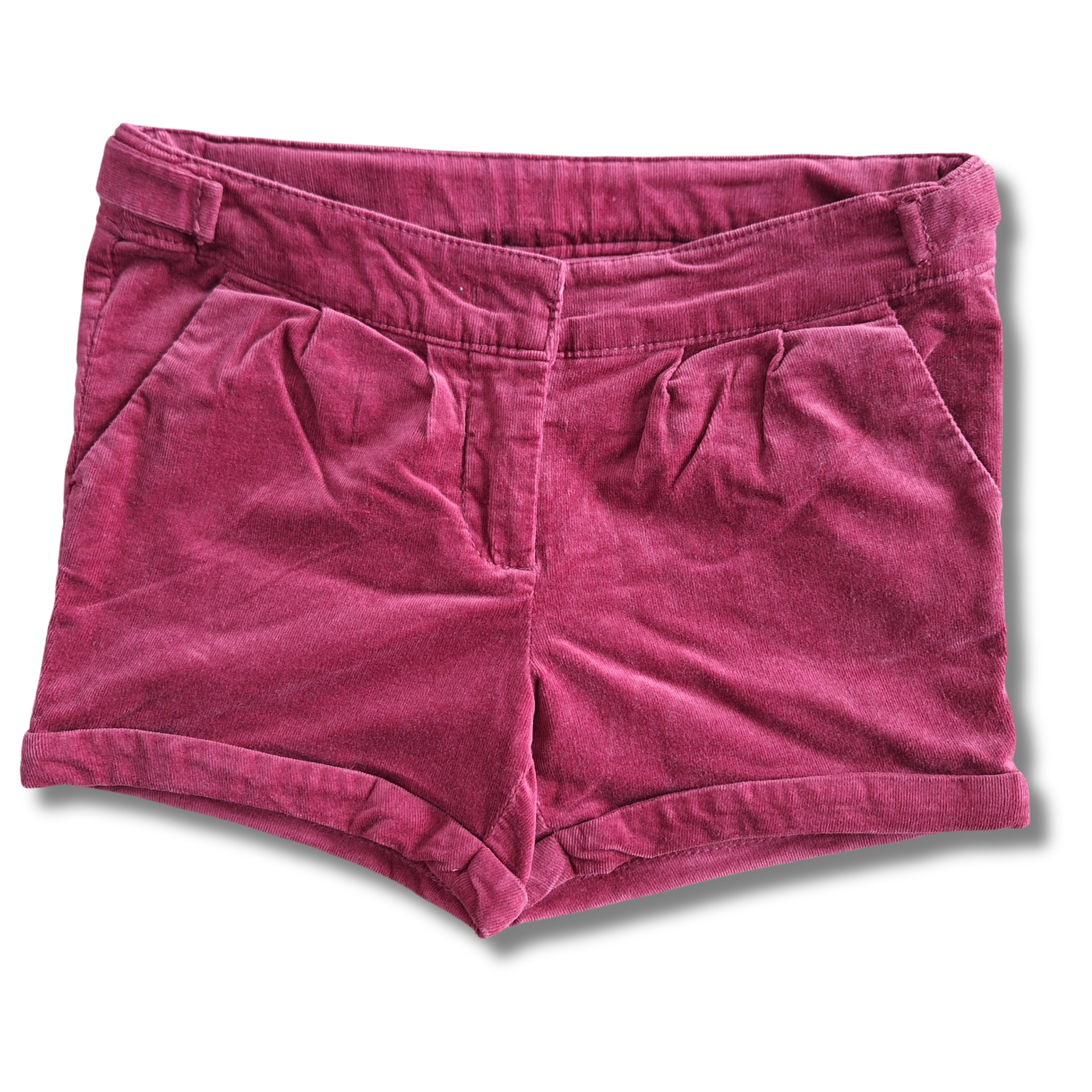 Bordeau short in velours, aanpasbaar.
