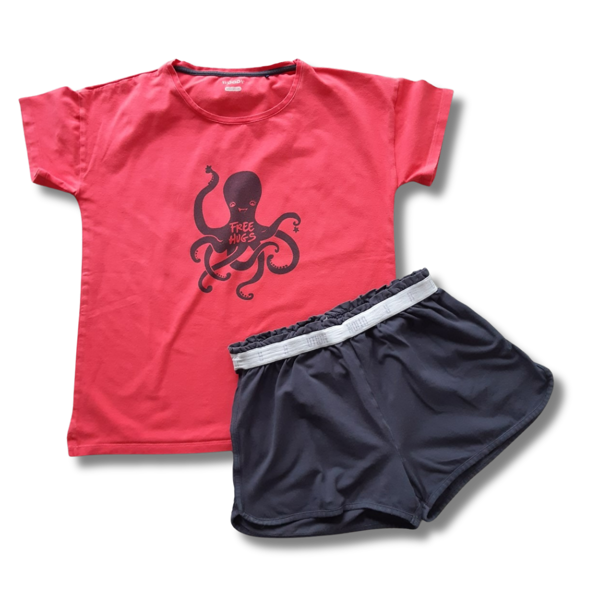 2-delige pyjama is nog in goede staat, maar de kleur is een beetje vervaagd..
