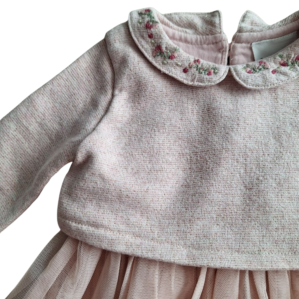 In de stof bovenaan en het kraagje aan de hals, zit een gouddraag verweven.