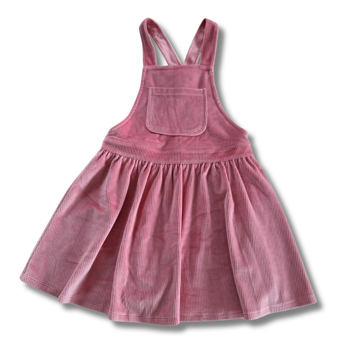 Het kleedje is aanpasbaar. De bretellen kunnen met knoopjes achteraan ingekort worden.