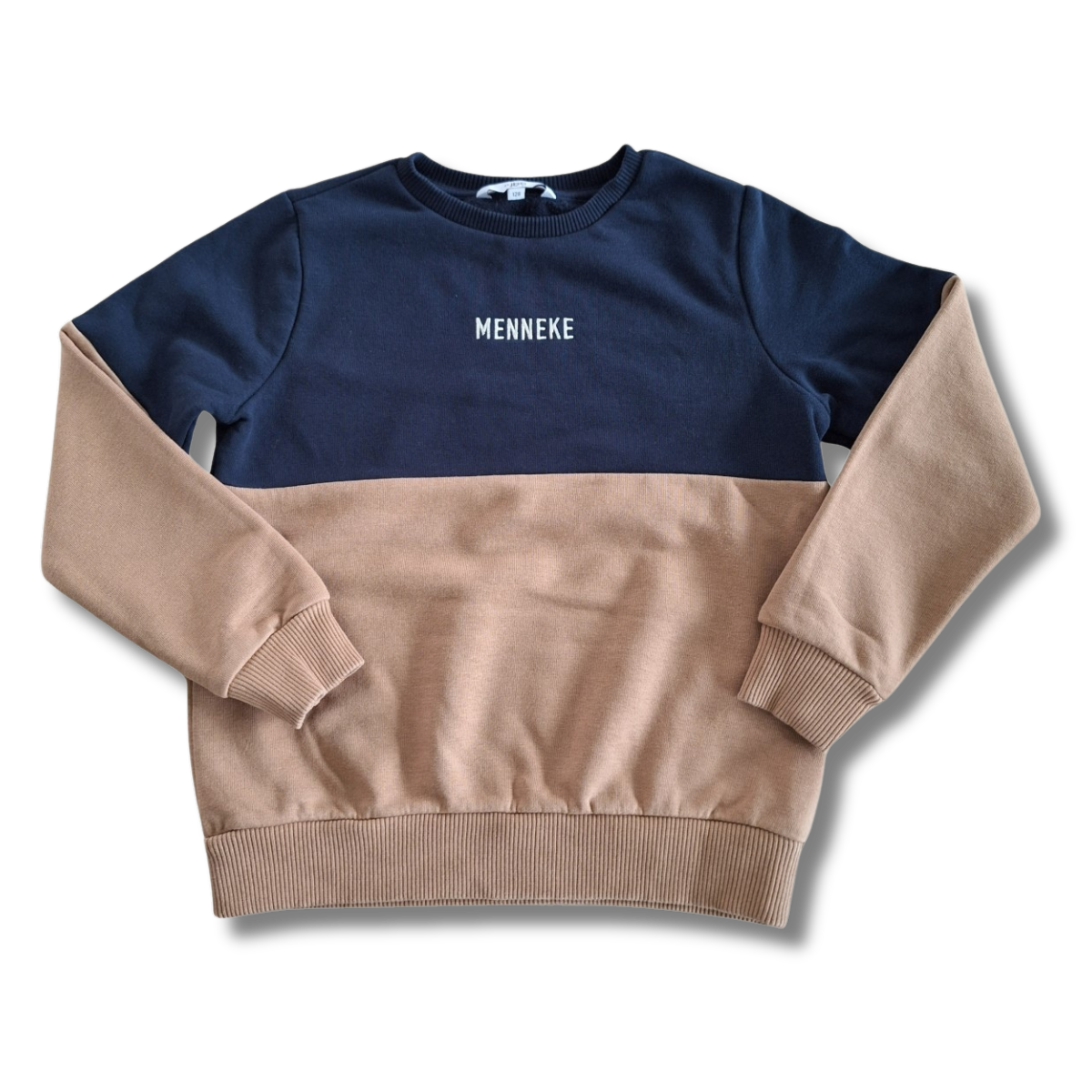 Donkerblauw met bruinkleurige trui "MENNEKE".