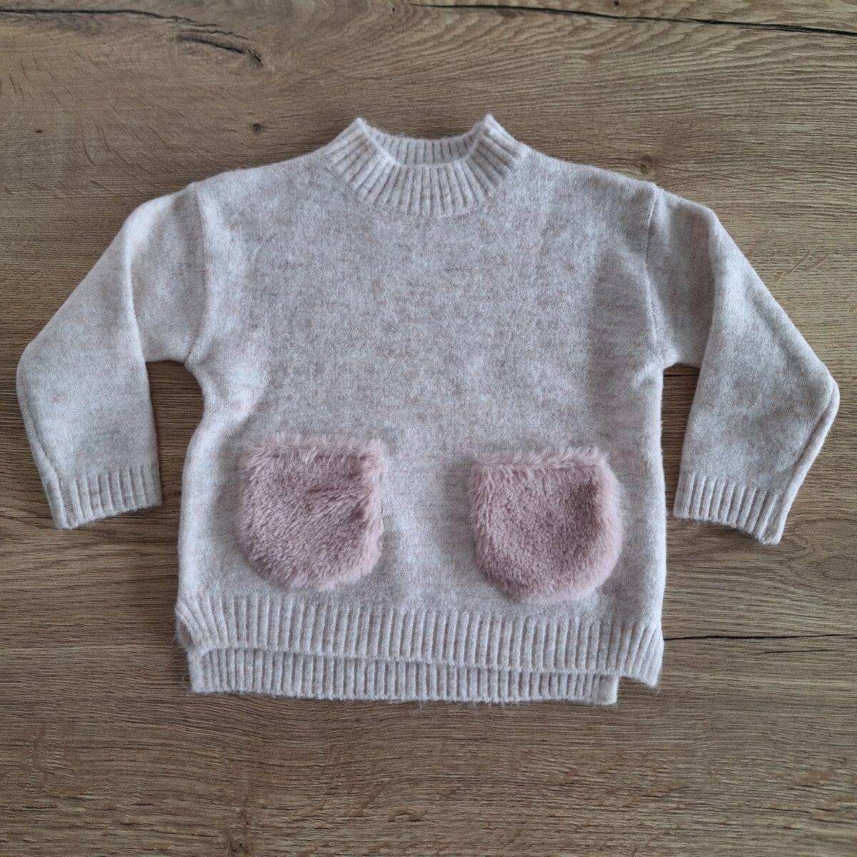 Zachte trui met 2 zakjes vooraan, achteraan is er een naad die wat uitgerokken is.