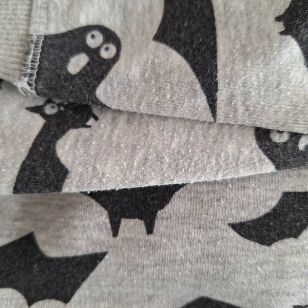 Grijze hoodie met zwarte spookjes en vleermuizen. Passend voor Halloween.