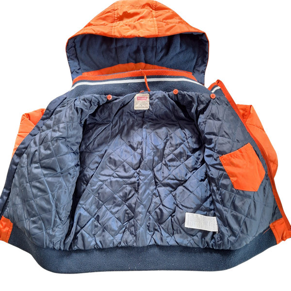 De kap kan vastgemaakt worden met knoopjes. 1 knoopje ontbreekt.