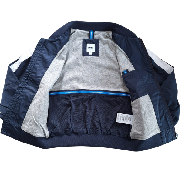 Donker vlauw met wit vestje, heeft rits als sluiting