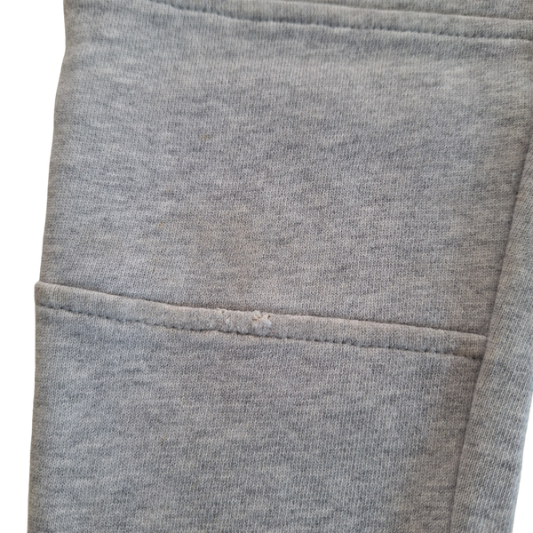Grijze trainingsbroek. De rechter knie is wat beschadigd, maar voor de rest is de broek nog in prima staat.
