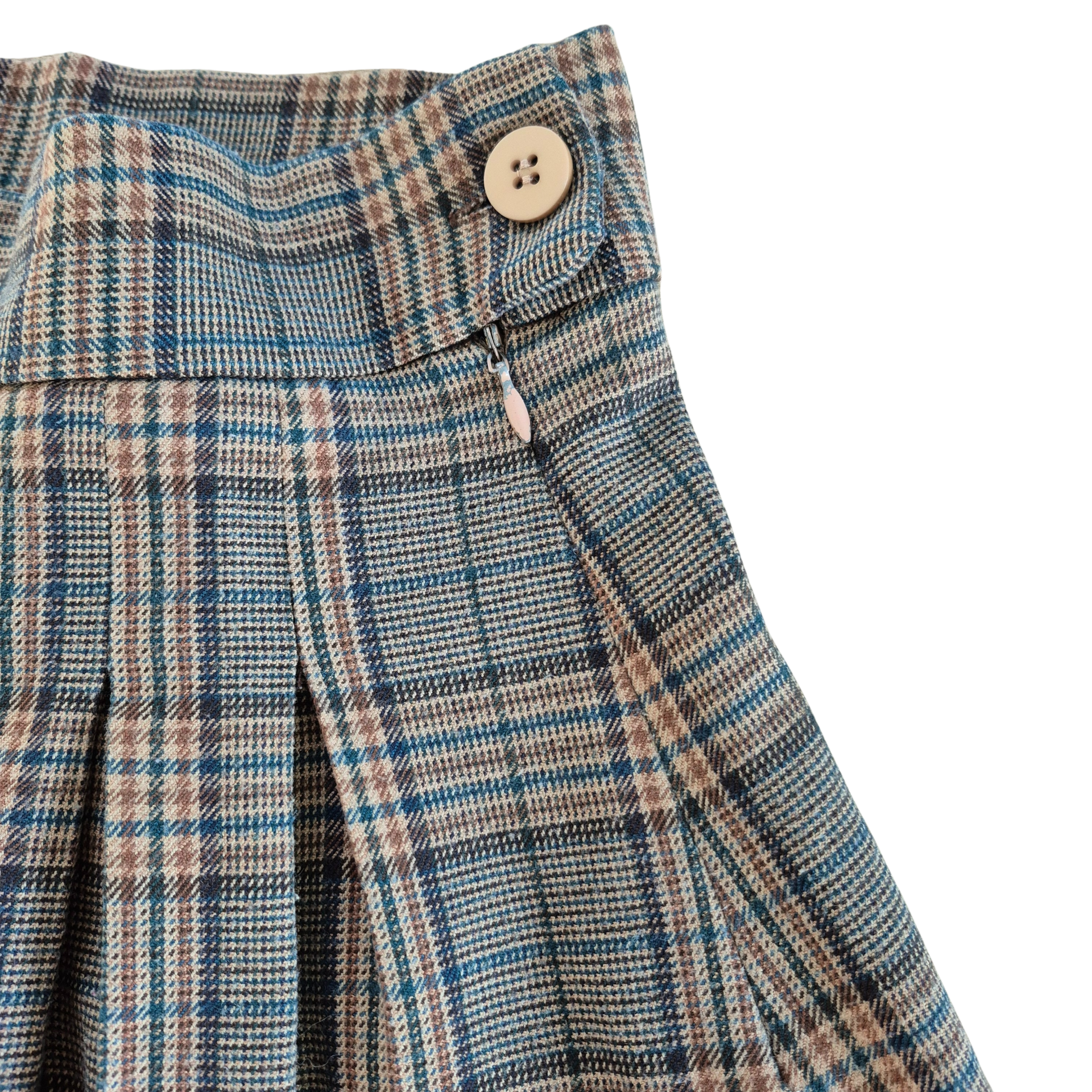 Geruite rok met knoop en rits in de zij.