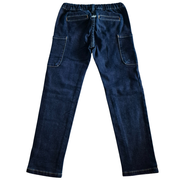 Donker blauwe jeans met rekker.